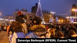 Праздник в городе чувствуется и на улицах – огни новогодних гирлянд светят сквозь стекла кафе, блестят на деревьях, ими даже "заплели" фонтан в центре города. На площади Ленина – "главная республиканская елка". В этом году украшения для елки местные власти покупали в России. Открывали елки во всех городах непризнанной республики синхронно в один день – 25 января. Накануне в школах провели утренники.