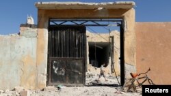 Момент удара по Хасу (подлинность видео официально не подтверждена). Автор утверждает, что на школу были сброшены бомбы, а не нанесен ракетный удар: