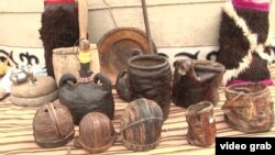 "Эта посуда делается из кожи крупного рогатого скота. Изготовлению посуды я учу своих детей и внуков. У меня есть специальные формы. Кожу обтягиваю поверх формы и обдают дымом несколько дней, - рассказывает он. - Эту посуду можно использовать в быту: пить кумыс и любые другие напитки".