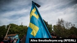 Крымчане вывесили во своих дворах траурные черный и национальный крымскотатарский голубой флаги: