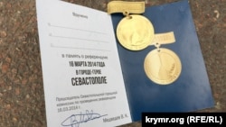 В аннексированном Россией Севастополе всем проголосовавшим 18 марта на выборах президента России выдают памятные медали, сообщает корреспондент Крым.Реалии.
