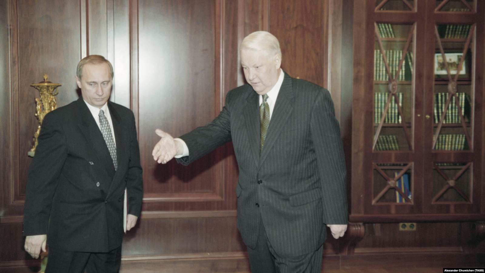 Первый мэр Санкт-Петербурга Анатолий Собчак и Владимир Путин (справа), 1994 год
