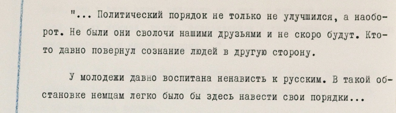 Антисоветские взгляды молодым людям навязывала чехословацкая интеллигенция, в том числе преподаватели, считали военные. В одном из писем есть такие строки: “В школах, институтах учителя и профессора преподают ученикам и студентам клеветнические нападки на Советский союз, на социализм, а эта лохматая молодежь им охотно верит”.