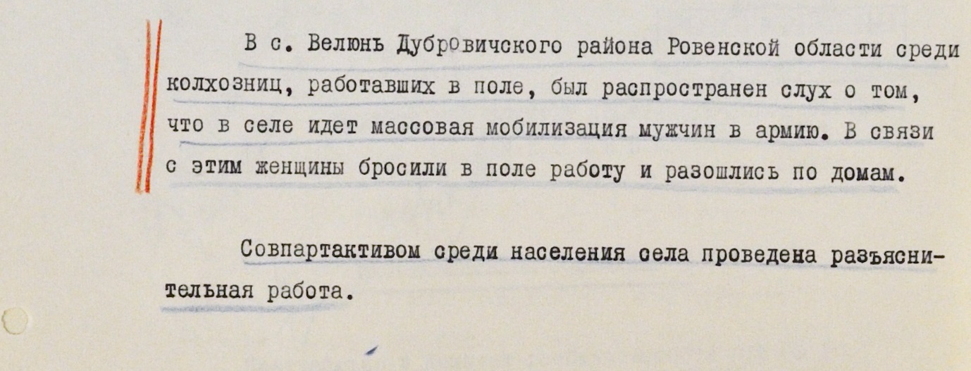 В одном из сел Ровенской области заговорили о массовой мобилизации. В итоге женщины побросали работу в поле и разошлись по домам. Местным активистам пришлось убеждать односельчан, что никакой массовой мобилизации нет и не будет.