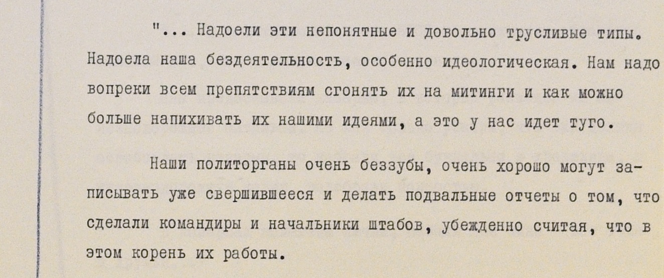 Как убедить жителей Чехословакии в том, что оккупация страны чужими войсками – это хорошо? Представитель советской армии считает, что все просто: нужно “вопреки всем препятствиям сгонять их на митинги как можно больше напихивать их нашими идеями”