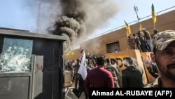 Силы безопасности Ирака применили слезоточивый газ, а охрана внутри здания посольства бросала шумовые гранаты для разгона протестующих.