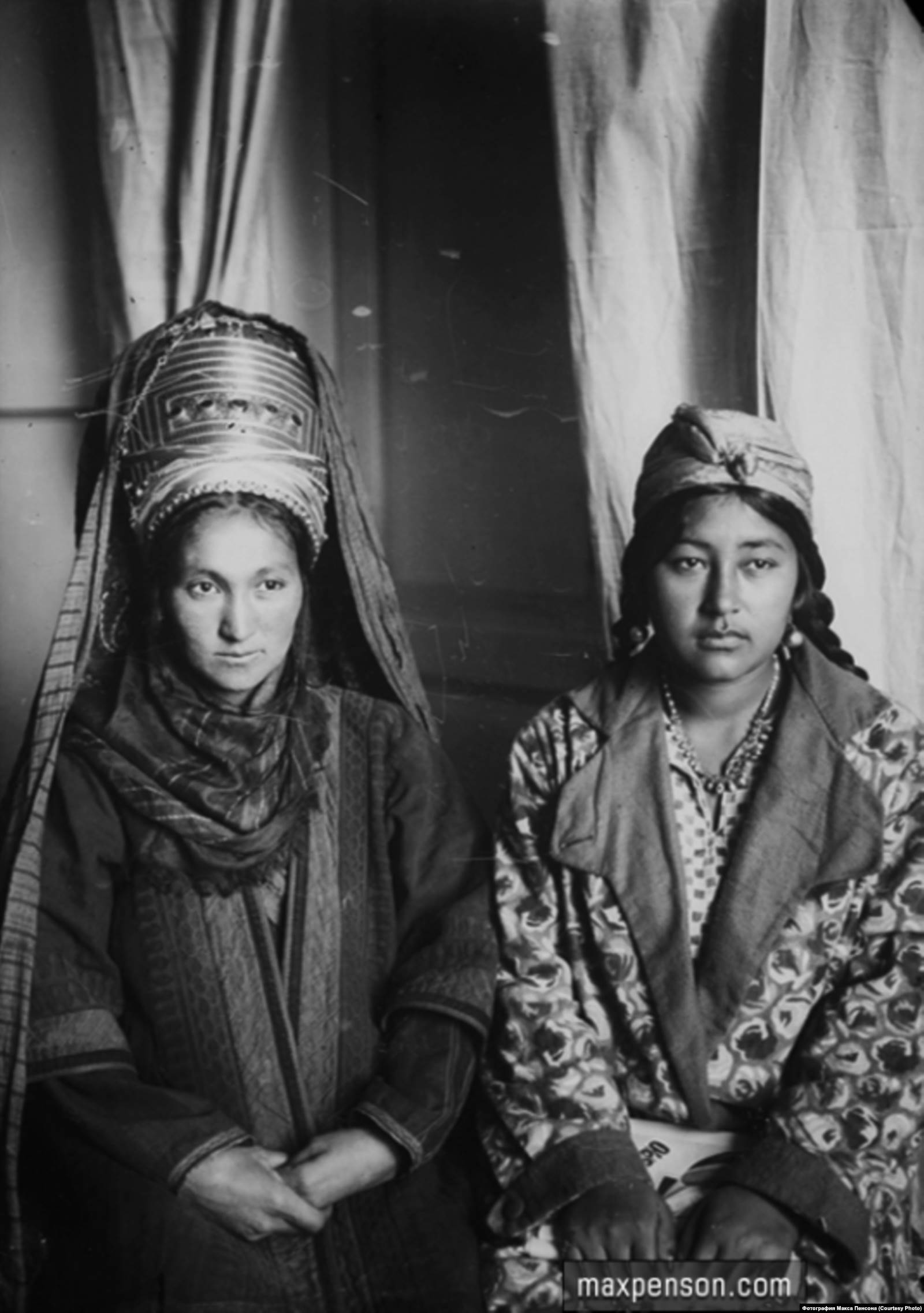Молодые девушки надевали мягкие шапочки типа тюбетейки. Однако после замужества большинство женщин меняли их на головные уборы с закрывающими нижнюю часть лица занавесками.