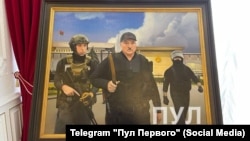 В минской резиденции Лукашенко выставили картину, на которой он с сыном Николаем с автоматами в руках. На картине также изображен силовик с закрытым лицом. Фотографии опубликовали в провластном телеграм-канале "Пул Первого".