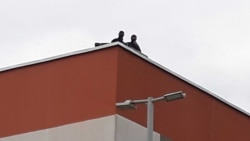 Перед зданием стоят около десяти автозаков, еще семь, по словам очевидцев, находятся во дворе колонии. На крыше сидят люди в черном, которых собравшиеся считают снайперами.