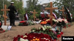 В Петербурге на Серафимовском кладбище похоронили 14 моряков, погибших в Баренцевом море.