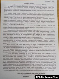 Из "справки-доклада" журналисты Настоящего Времени узнали, что на расстреле двух гражданских предполагаемый убийца не остановился. Вернувшись в село, он забрал женщину, которая была женой одного убитого и сестрой другого.